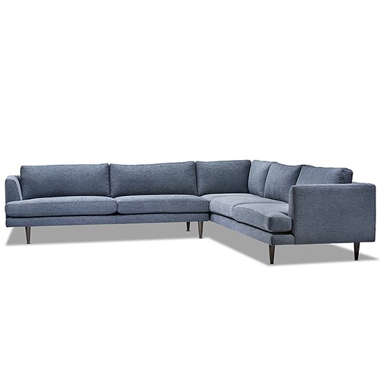 An approachable design, Felix has an angled arm, box cushions, saddle stitch finishes, atop a conical, solid timber leg.