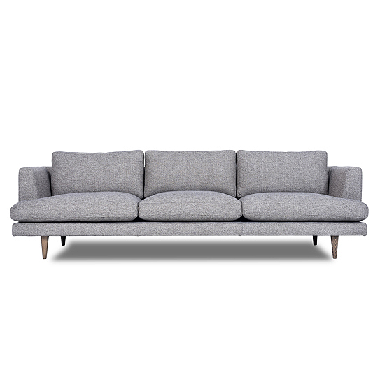 An approachable design, Felix has an angled arm, box cushions, saddle stitch finishes, atop a conical, solid timber leg.