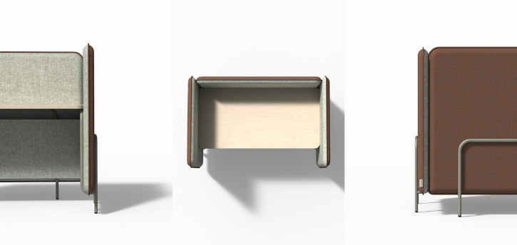 The Hideaway integrates desking with the Jacob midback or highback. Swap plush cushions for a laminate work surface and you have an upholstered workstation. It’s also available as a Return, which extends the size of the workstation by adding a rear wall with an inbuilt shelf.
